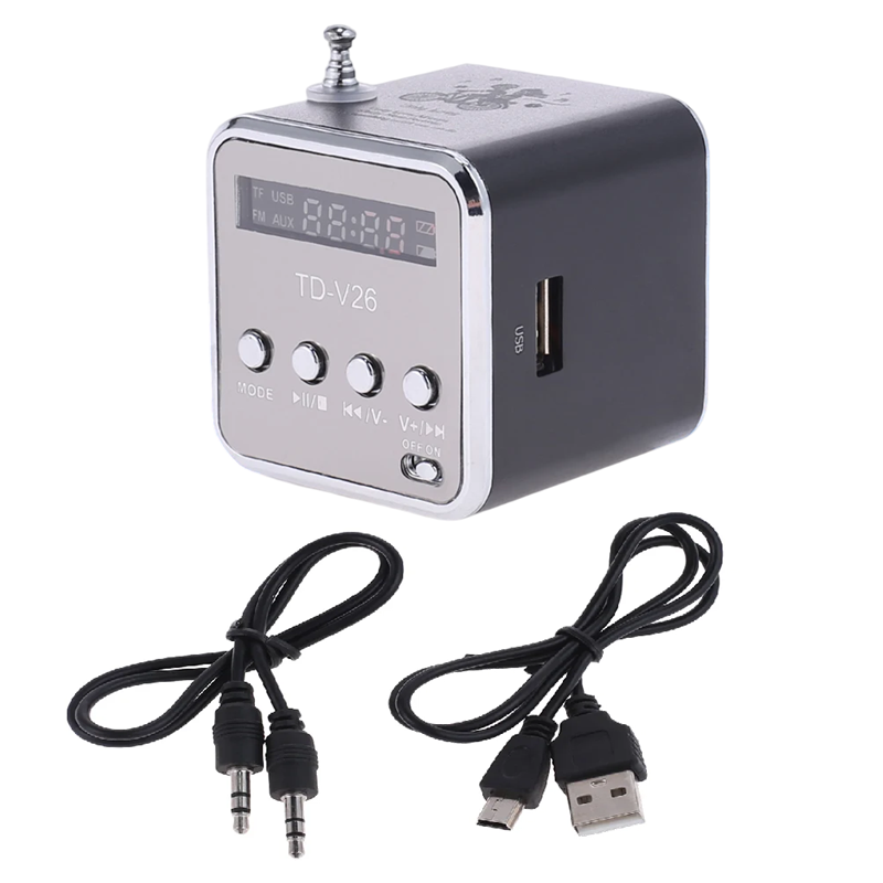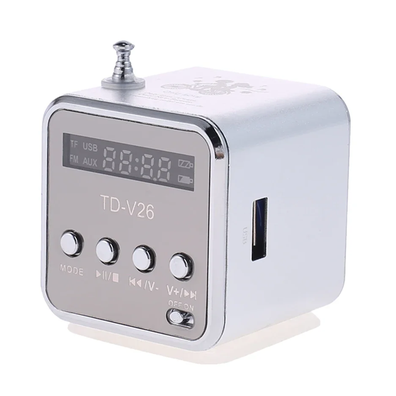 Questo altoparlante digitale portatile combina le funzioni di radio FM, lettore MP3 e dispositivo audio mini in un design compatto. Grazie al display LCD, il controllo è semplice e chiaro, anche grazie ai quattro pulsanti intuitivi. L'alto parlante integrato da 3 W offre un suono chiaro e potente adatto per l'ascolto quotidiano. L'altoparlante supporta la riproduzione da schede TF e USB fino a 32 GB, consentendo di trasportare e riprodurre un gran numero di brani senza connessione a Internet. Non manca una batteria ricaricabile da 600 mAh, che consente un funzionamento prolungato con una sola carica.