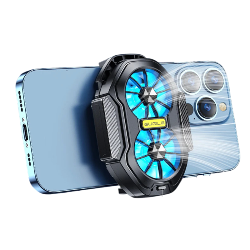Raffreddatore rapido per telefoni con doppio ventilatore riduce immediatamente la temperatura. Ha un'autonomia wireless e una batteria duale per un utilizzo prolungato. Descrizione completa