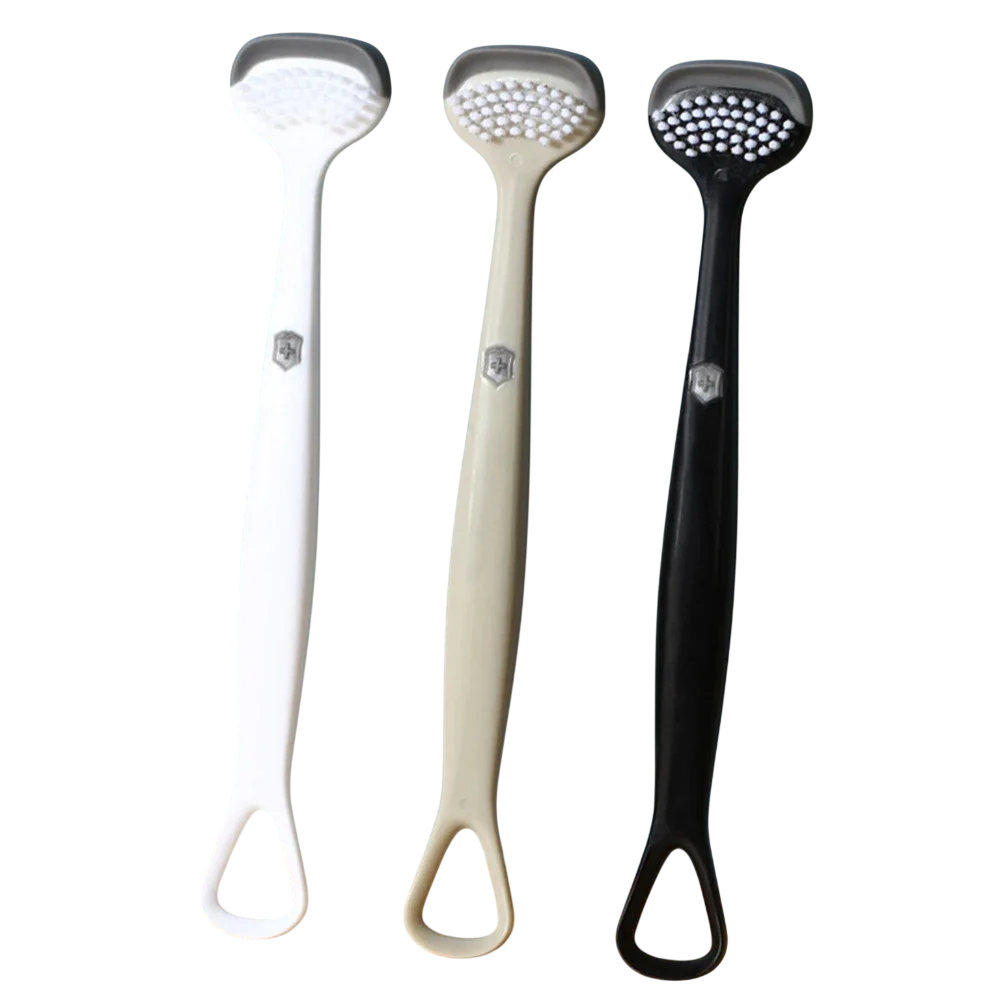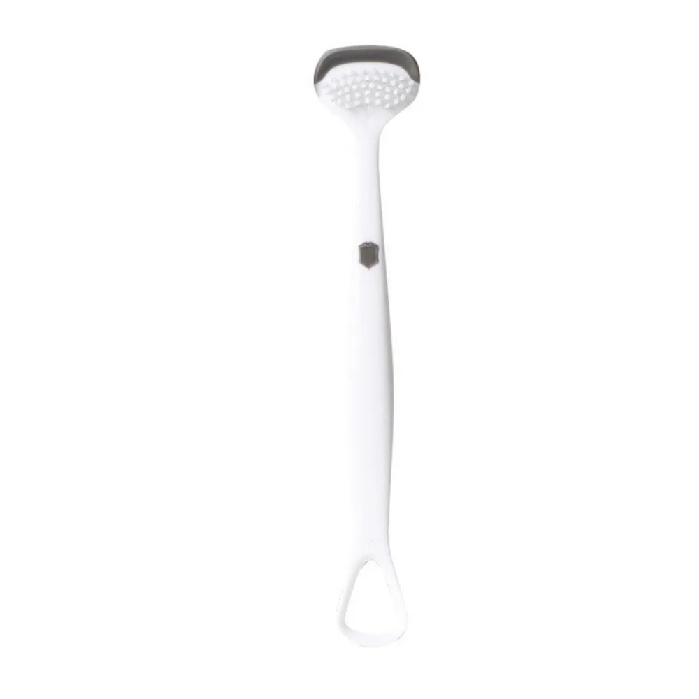 Si tratta di un raschietto per lingua doppia faccia, che offre due diverse superfici di pulizia per un'igiene più efficace.