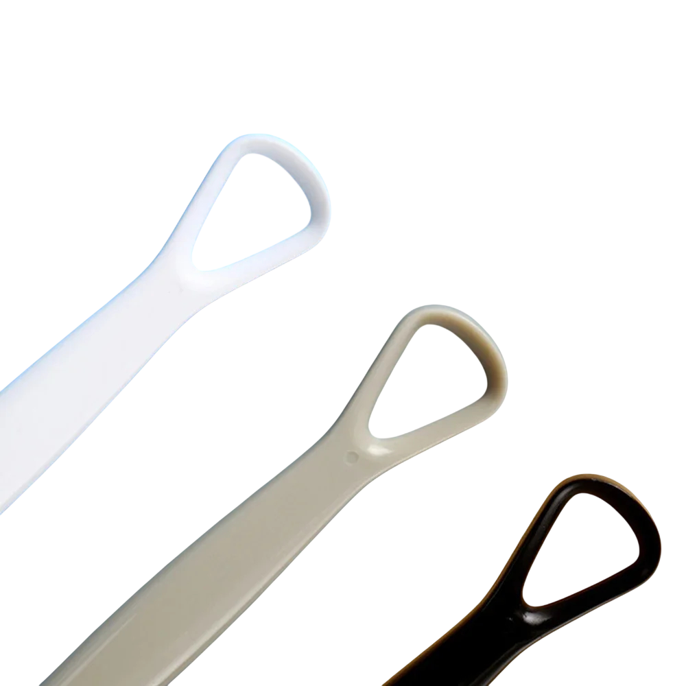 Grazie al design doppia faccia e alla forma ergonomica, il raschietto è un accessorio pratico per la cura quotidiana dei denti.