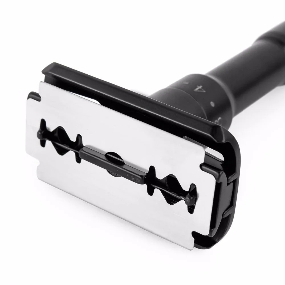Rasoiolo nero regolabile con 5 lame rasoio manuale con 6 livelli di regolazione della lama Rasoio di lusso con supporto 10,8 cm x 5 cm x 1,3 cm