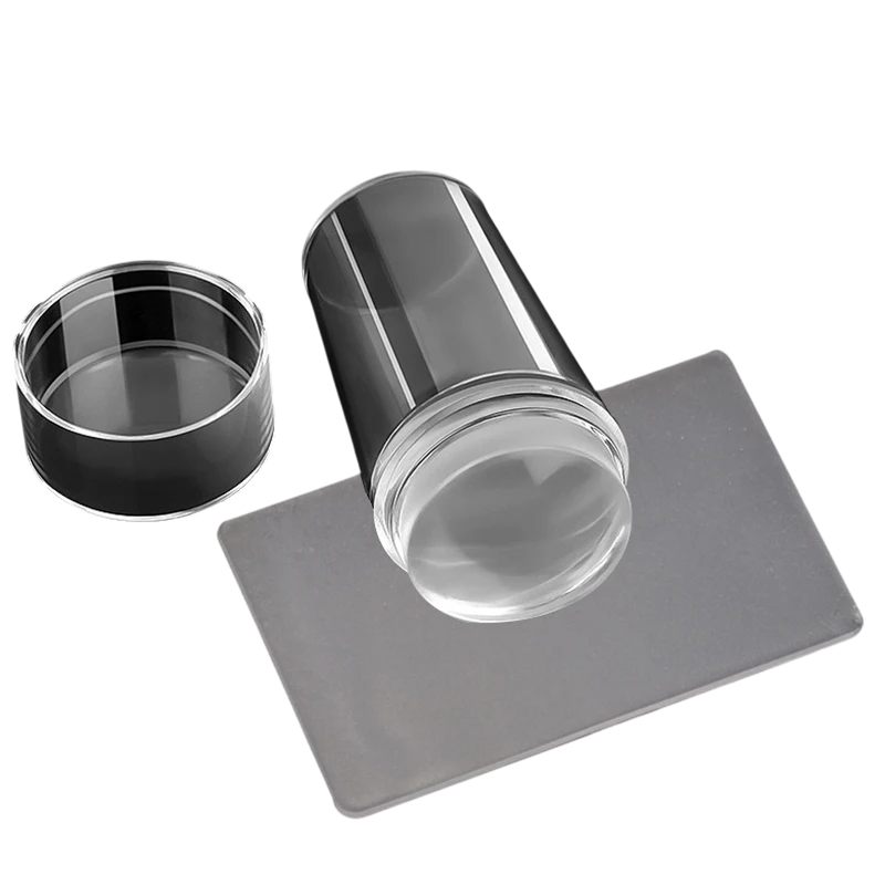 Set per la stampa delle unghie con timbro trasparente e raschietto per un'applicazione precisa dei motivi sulle unghie. Descrizione completa