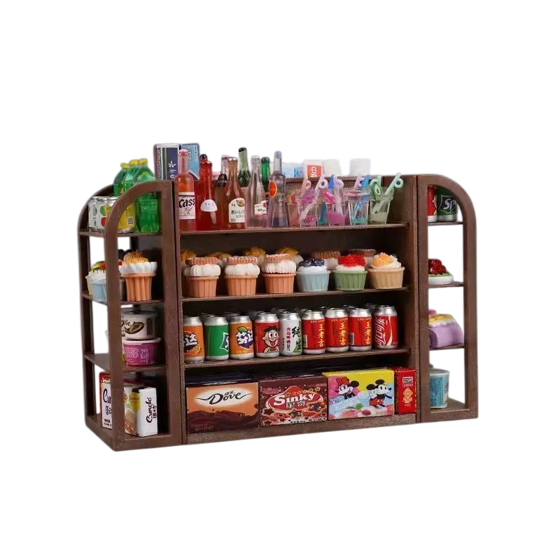 Pagina iniziale Pagina iniziale Tutto per bambini Giocattoli per bambini Giochi di mestiere Regalino marrone scuro 4 ripiani Mini supermercato con 30 pezzi di cibo e bevande Giocattolo simulativo per bambini Banco da gioco per fare il venditore