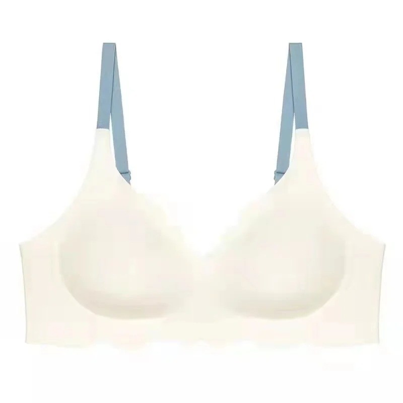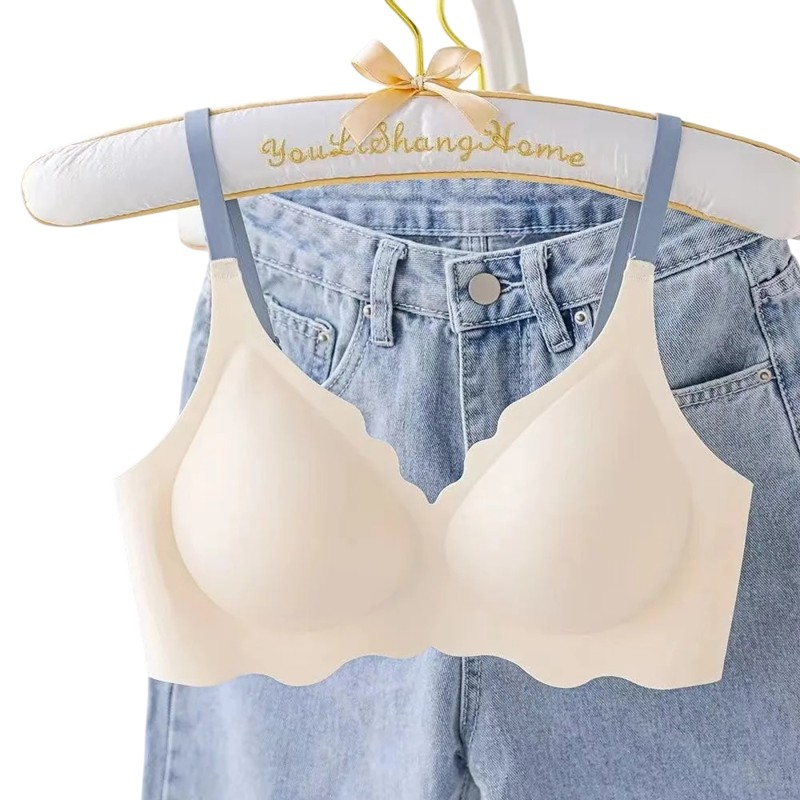 Reggiseno da donna con coppe lisce e bordo ondulato in nylon elastan senza ferretto con spalline sottili per uso quotidiano