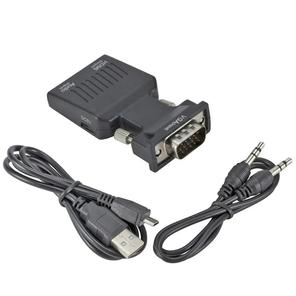 Riduttore VGA a HDMI con ingresso audio e alimentazione Micro USB Convertitore di segnale Adattatore per monitor TV Proiettore Compatibile con PC