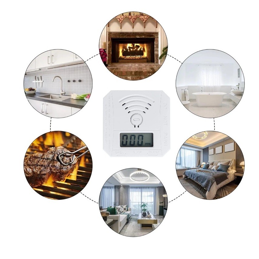 • 1× Rilevatore quadrato di monossido di carbonio (CO) con display LED