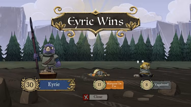 Prima dell'arrivo dei Gatti, dominavano la foresta Le Famiglie dell'Aquila. Devono riprendere il controllo occupando territori e costruendo nidi, se non vogliono scivolare di nuovo verso il semplice litigio. Gli Aquiloni sono orgogliosi e vincolati dai decreti dei loro leader. Ogni leader è associato a diverse abilità speciali e vantaggi. Il giusto leader al momento giusto può garantirti la vittoria, ma un leader sbagliato può completamente rovinare le tue prospettive di dominio sulla foresta.