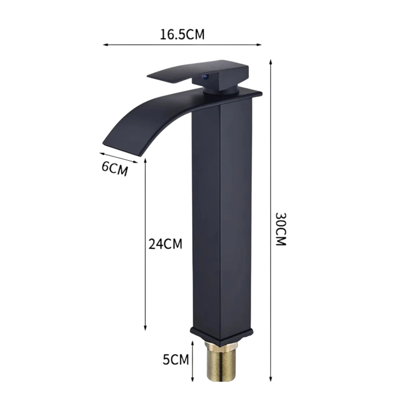 Questo rubinetto da lavabo a cascata in acciaio inossidabile di dimensioni 30 x 16,5 cm rappresenta la combinazione perfetta di stile, funzionalità e qualità. È progettato per fornire un piacevole flusso d'acqua a cascata, che risulta estetico e rilassante. Il rubinetto è adatto per acqua calda e fredda e il suo controllo a leva singola consente una facile regolazione della temperatura e del flusso. Grazie al suo design basso, si adatta perfettamente ai lavabi di bagni, toilette o spazi alberghieri.
