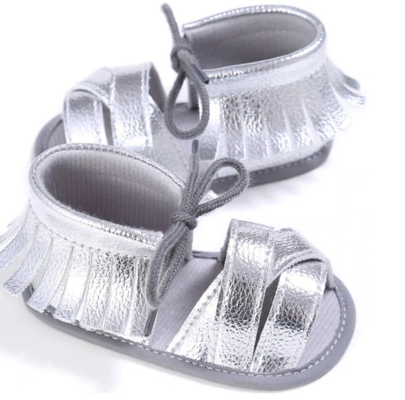 Sandali da ragazza decorati con frange saranno un fantastico accessorio di moda per vestitini estivi o gonne.