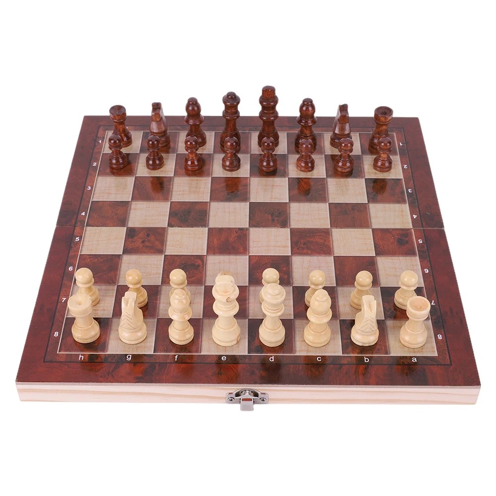 Scacchiera pieghevole in legno 29 x 29 cm Gioco da tavolo per bambini e adulti Grande set di scacchi Pedine in legno Gioco di scacchi da viaggio