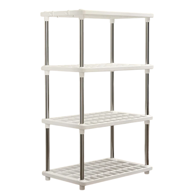 Questo scaffale di stoccaggio bianco con quattro ripiani rappresenta la combinazione ideale di funzionalità e design semplice. Permette di utilizzare efficacemente lo spazio e mantenere gli oggetti sempre a portata di mano e ben organizzati. Grazie al suo materiale plastico resistente, è adatto anche per ambienti umidi, quindi si adatta perfettamente sia in bagno che in cucina. Aspetto moderno, facile manutenzione e utilizzo universale lo rendono un aiuto indispensabile in ogni abitazione.