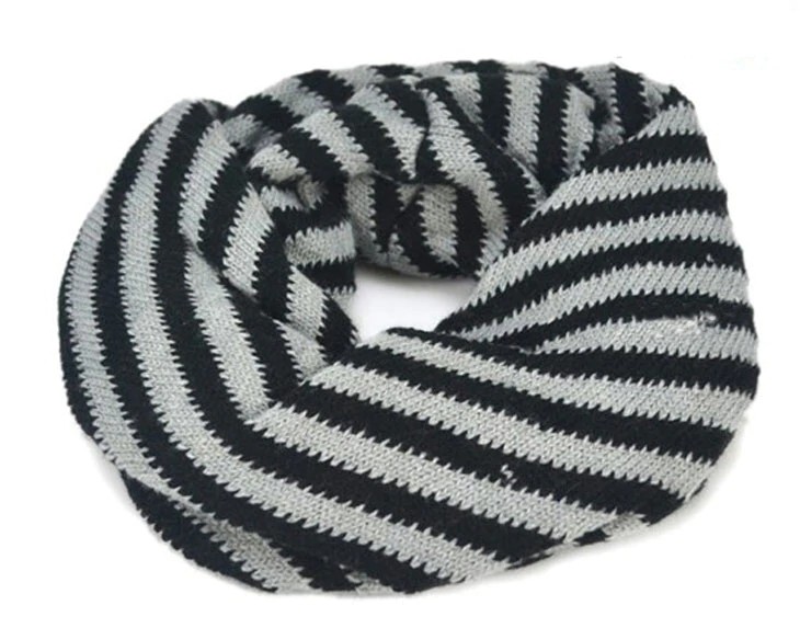 Questo scaldacollo a righe riscalderà magnificamente il tuo bambino nei giorni invernali.
