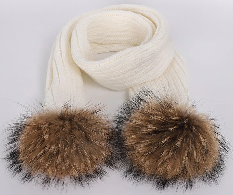 Questa sciarpa invernale terrà caldo il tuo bambino e i pompon pelosi piaceranno ai bambini.