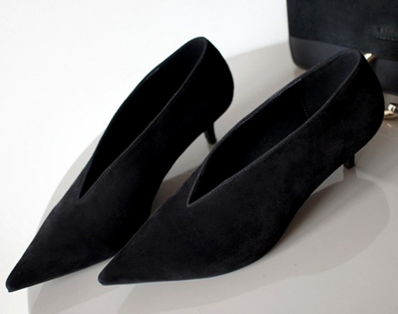 Obbligatevi in queste stilose scarpe con tacco, che hanno la parte anteriore a punta. Le scarpe sono molto comode durante la camminata.