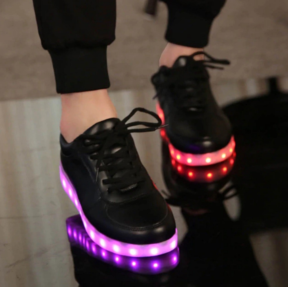 Le scarpe hanno luci LED nella suola che cambiano colore.