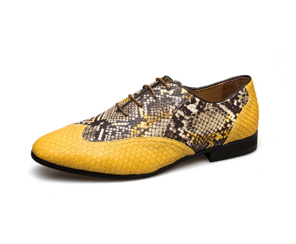 Queste scarpe stringate da uomo in stile pelle di serpente gialle sono proprio per voi.