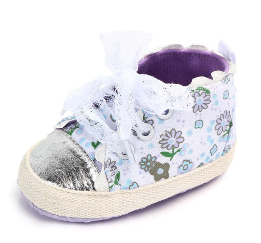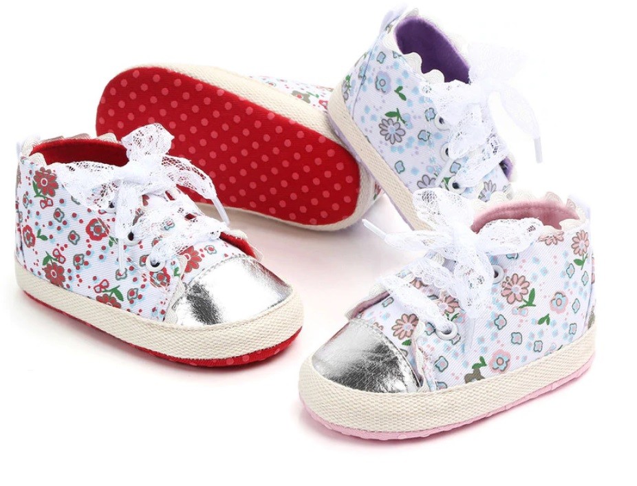 Le scarpine in cotone per bambine decorate con fiori sono adorabili!