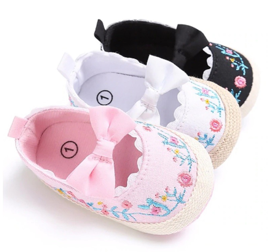 Le scarpine in tela per bambina con elastico sopra il collo del piede si adatteranno perfettamente a ogni piedino.