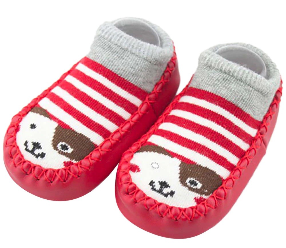 Le scarpine per bambini con immagini si indossano facilmente come calzini e sono molto comode.