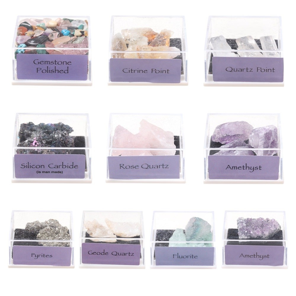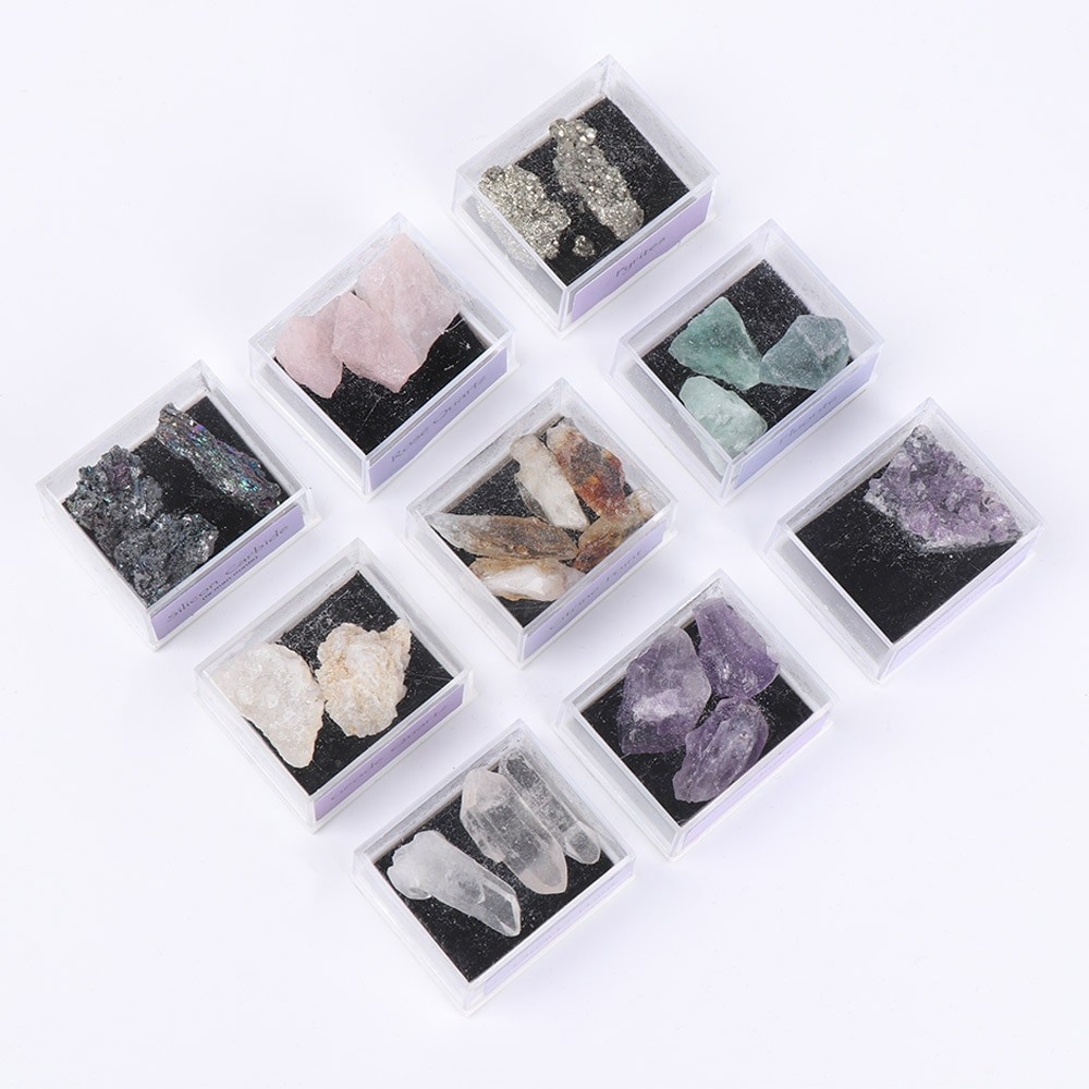 Scatola con minerali grezzi