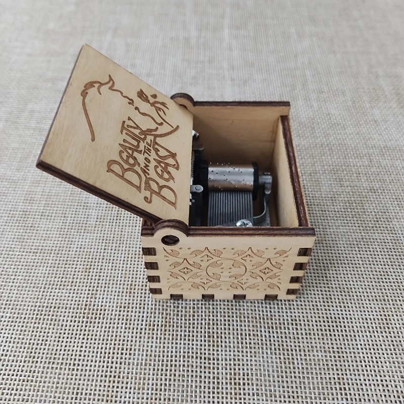 Scatola musicale in legno Beauty and the Beast 6x5x4 cm a carica manuale scatola musicale meccanica decorazione regalo