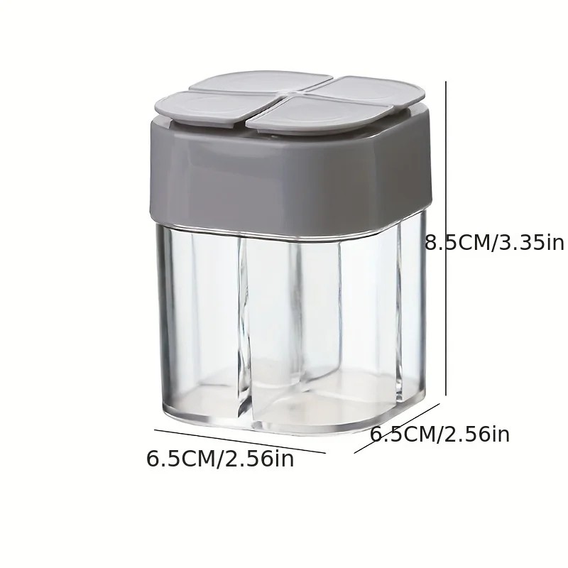 Pagina iniziale Pagina iniziale Casa e articoli domestici Per la cucina Conservazione degli alimenti Portaspezie Scatola per spezie 4 in 1 con coperchio 8,5 × 6,5 × 6,5 cm contenitore multifunzionale con 4 scomparti per l'organizzazione delle spezie in cucina