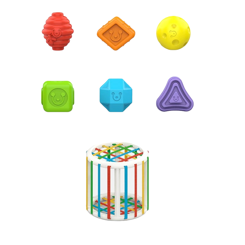 Colori vivaci. 6 blocchi di diverse forme. Giocattolo per bambini. Descrizione completa