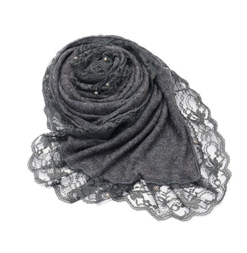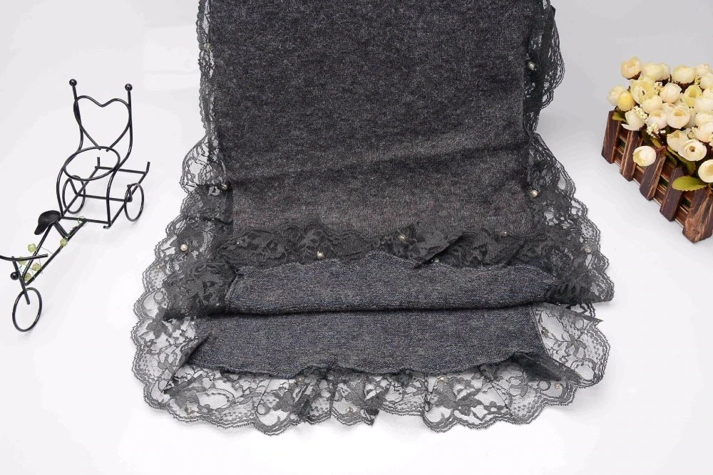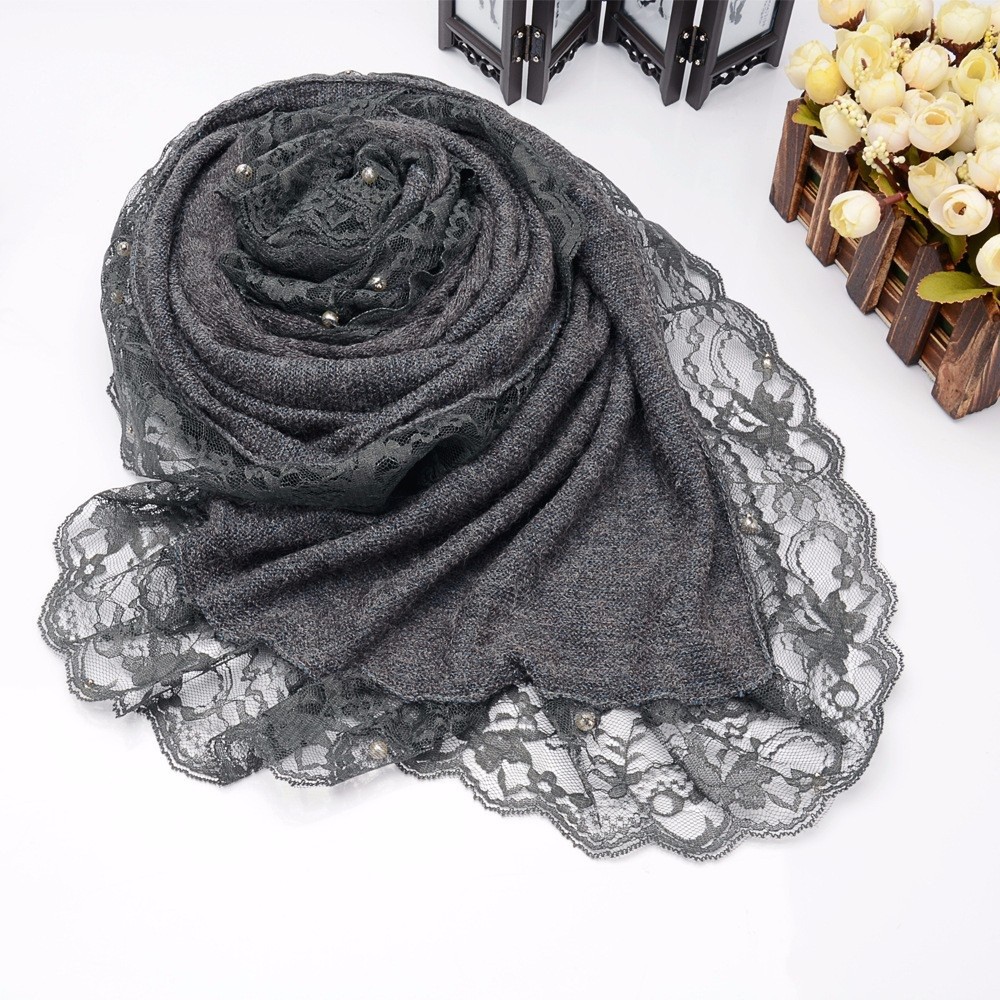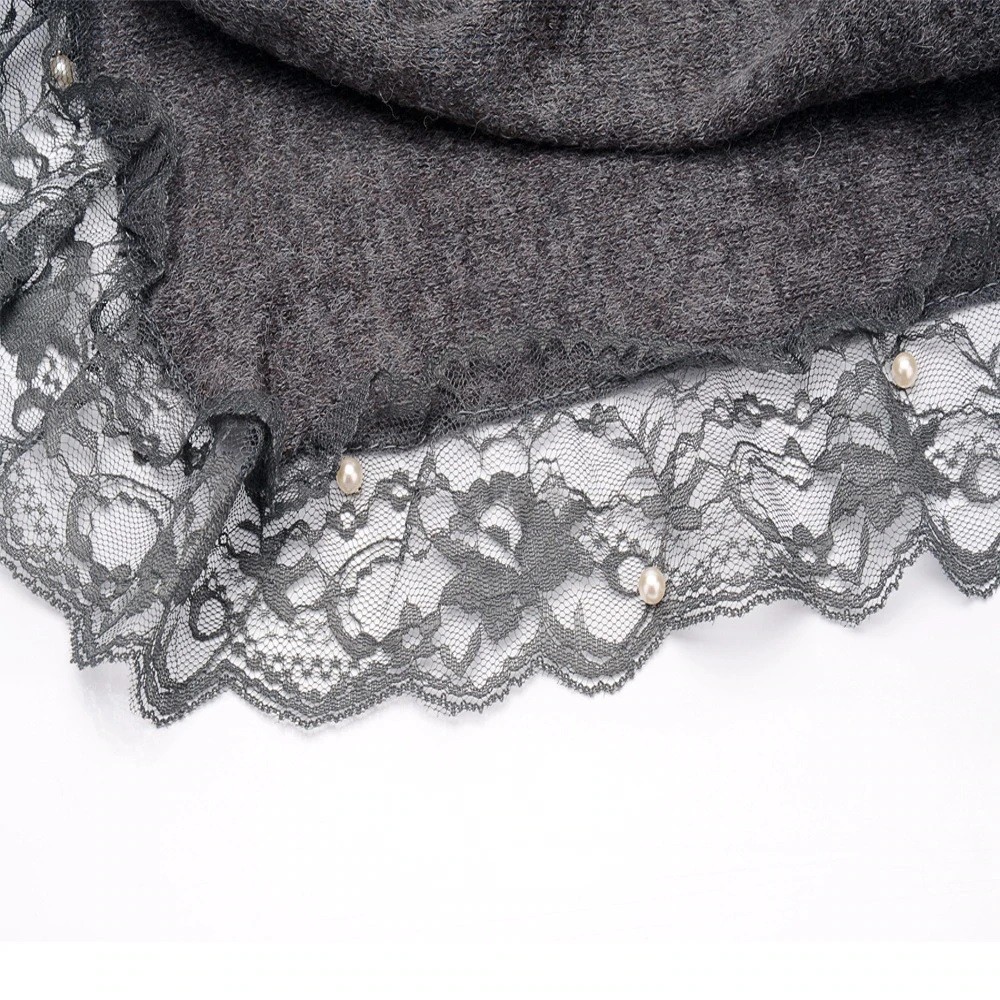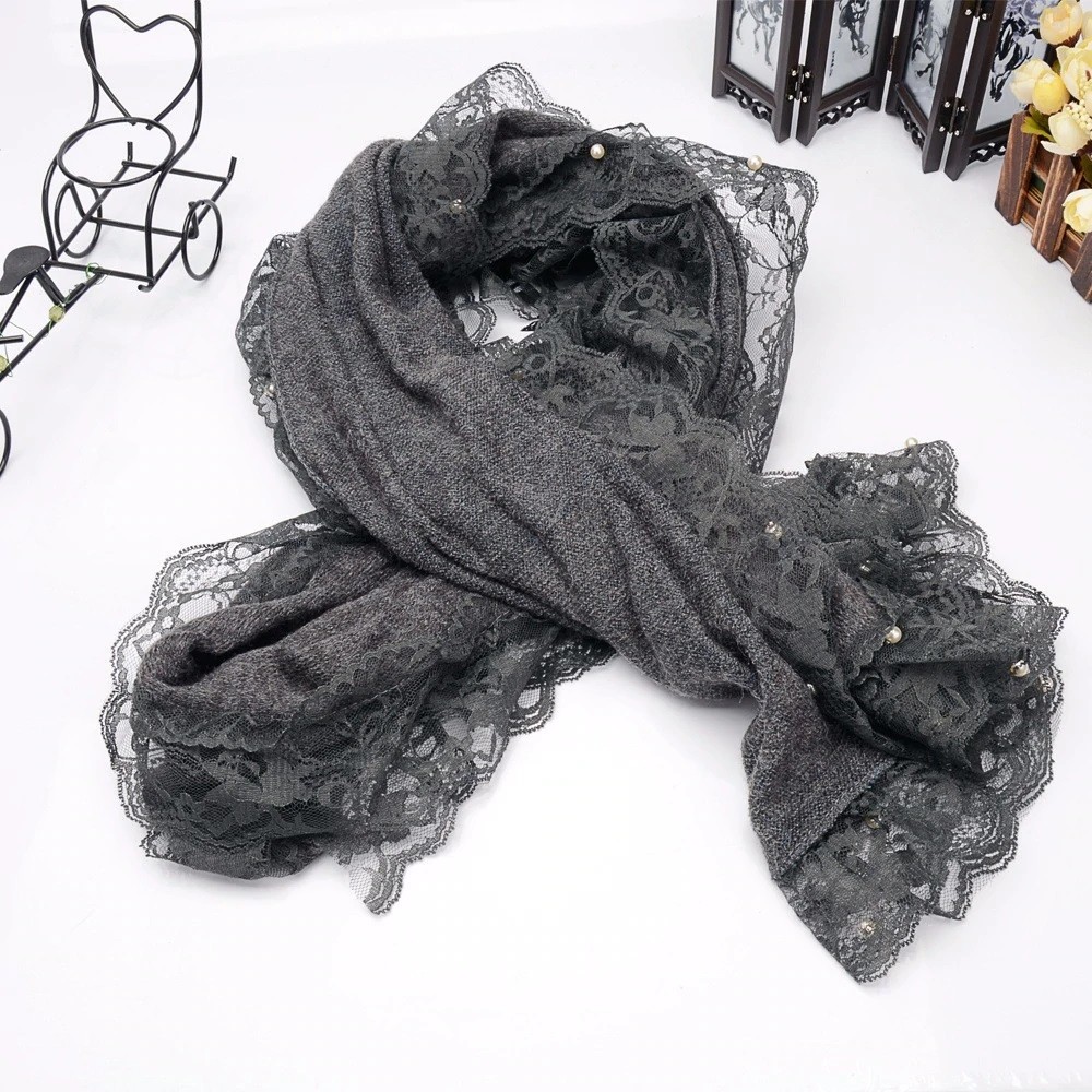 Sciarpa da donna in cotone con pizzo decorata con perle sarà una bellissima decorazione per il tuo outfit.