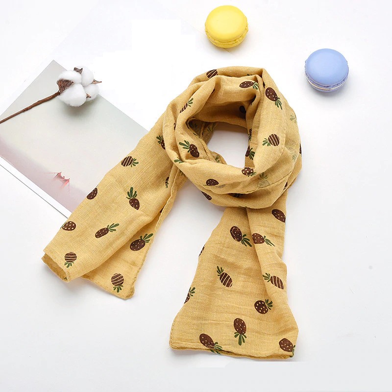 Questa sciarpa con stampa di ananas tiene bene caldo e il tuo bambino la adorerà.