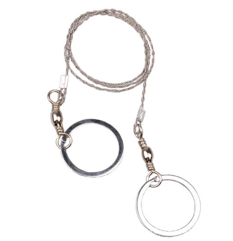 È intrecciato con fili d'acciaio e ha maniglie su entrambe le estremità, da cui si tira.
