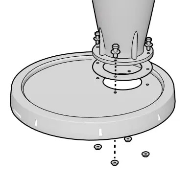 Segna il foro centrale per il ciclone inferiore e i fori più piccoli per le viti. Drillali e controlla il corretto posizionamento.