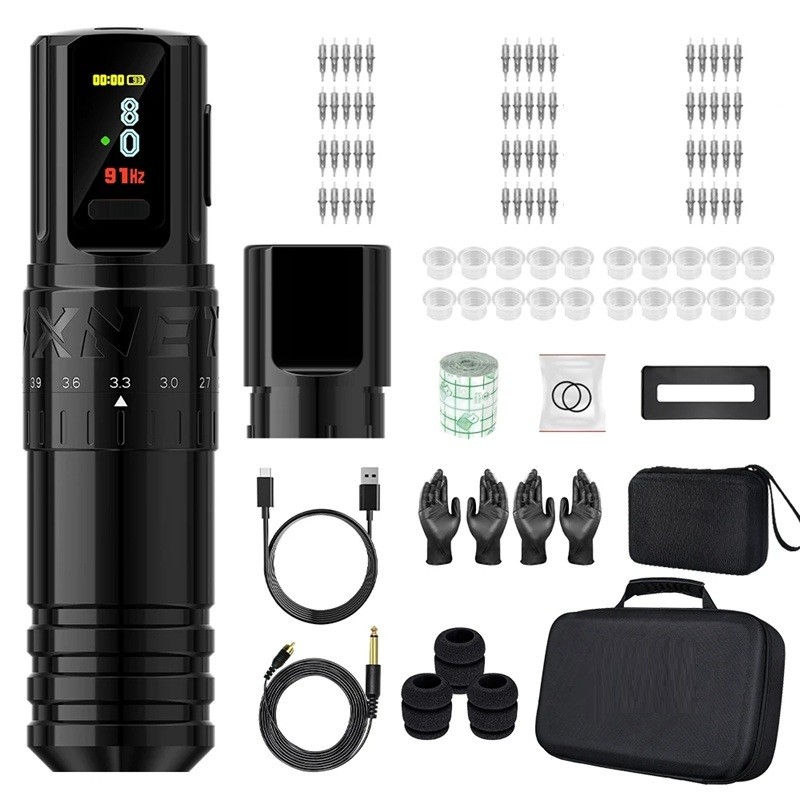 Questo set professionale con macchina per tatuaggi wireless offre un'ideale combinazione di prestazioni, flessibilità e tecnologia moderna, adatta sia per i tatuatori principianti che per i professionisti esperti. Dimensioni compatte di 14,5 x 3,6 cm garantiscono una presa comoda, permettendo un lavoro preciso anche durante lunghe sessioni di tatuaggio.