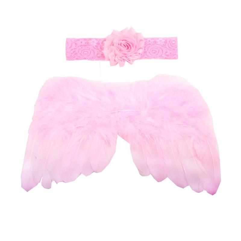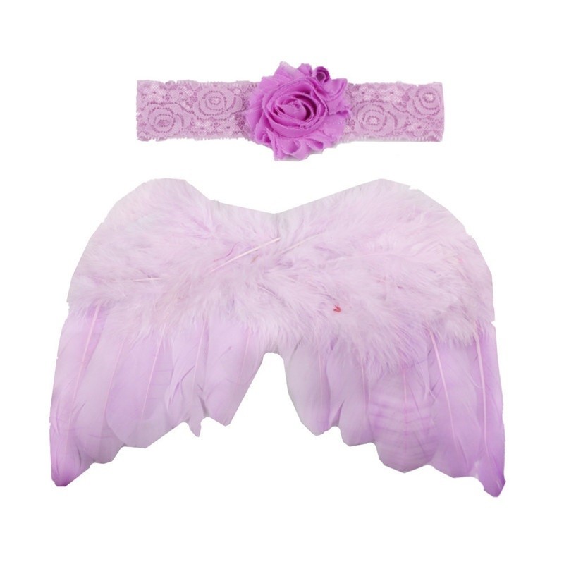 Roztomilý set na novorozenecké focení - andělská křídla z peří a čelenka.