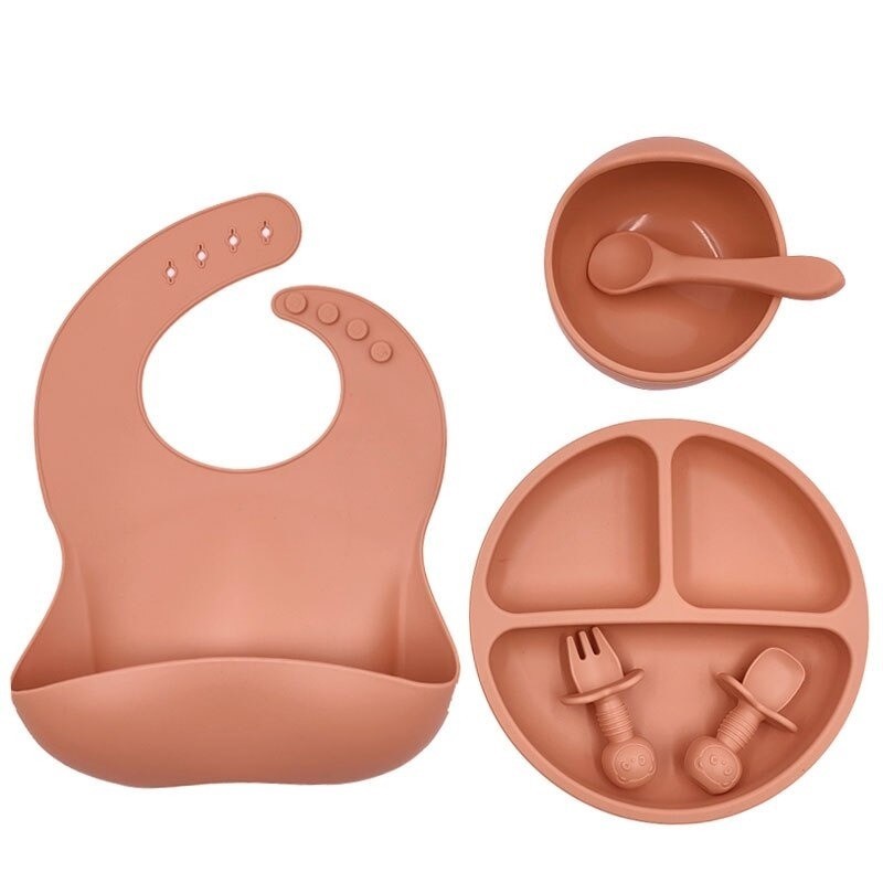 Adatto per i più piccoli e per imparare a mangiare autonomamente. La set ha dettagli pratici. Un pratico bavaglino che cattura tutto ciò che si perde.