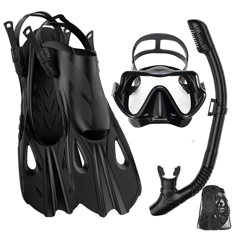 Attrezzatura pratica per attività acquatiche che offre pinne, maschera e snorkel per un movimento confortevole in acqua e un'osservazione ininterrotta dell'ambiente sottomarino. Descrizione completa