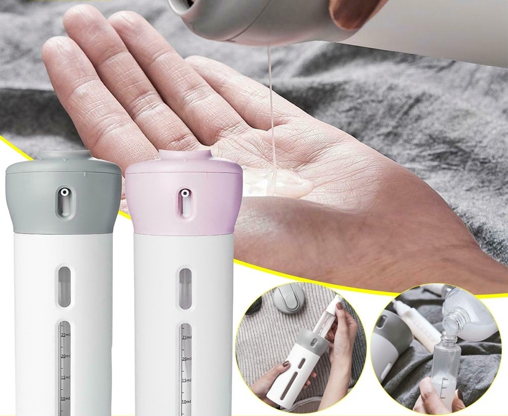 Pratico dispenser contiene 4 flaconi, nei quali puoi versare diverse creme o shampoo.