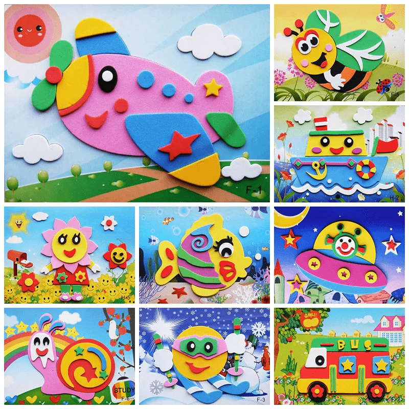 Set di 10 pezzi di adesivi in schiuma EVA 3D per bambini Puzzle animali 12 x 17 cm Divertimento creativo Selezione casuale tra 20 stili Motivi cartoon