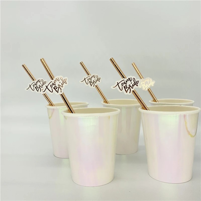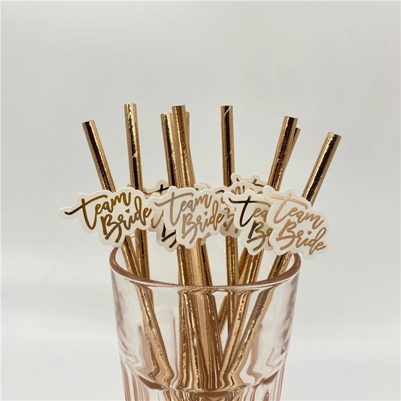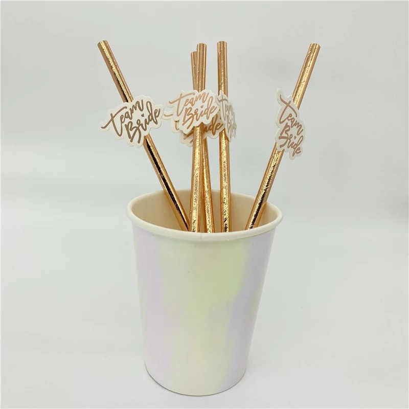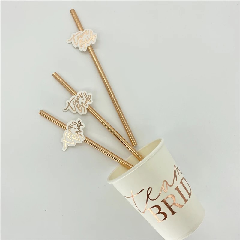 Set di 10 pezzi di cannucce di carta Team Bride Cannucce dorate per addio al nubilato Festa di matrimonio