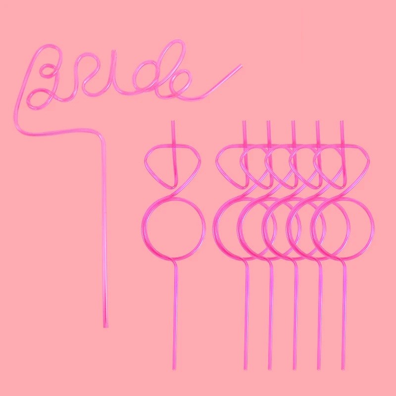 Set di 12 pezzi di cannucce di plastica Bride 30 x 25 cm Cannuccia Sposa + cannucce rosa con cuore Addio al nubilato