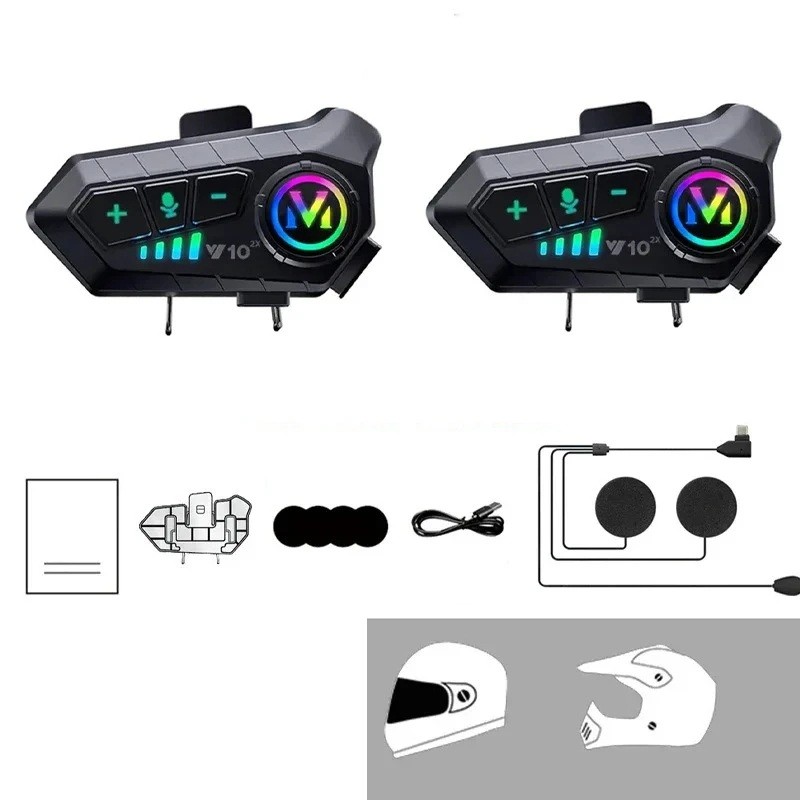 Coppia di intercomunicanti Y10 con microfoni morbidi per caschi integrali, lunga autonomia, impermeabilità IPX6 e comunicazione stabile grazie al Bluetooth 5.3. Descrizione completa