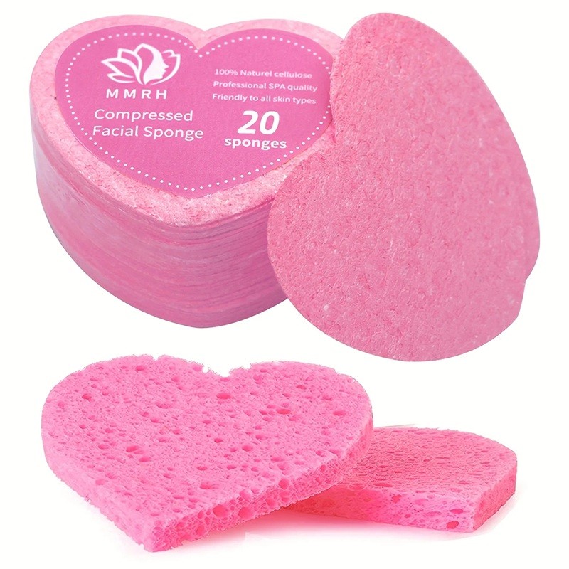 Set di 20 spugne naturali per il viso a forma di cuore Tamponi detergenti pressati Esfolianti e riutilizzabili Accessori per la pelle