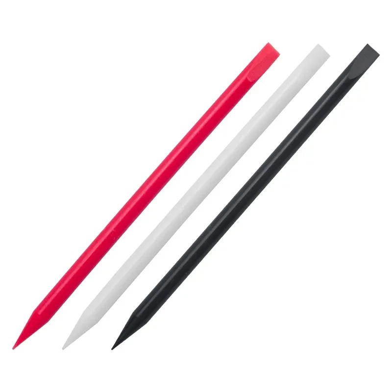 Questo set di tre strumenti in plastica è ideale per chi lavora con componenti delicati e sensibili, come orologi, telefoni cellulari o circuiti elettronici. Ogni strumento ha una punta affilata da un lato e una punta piatta dall'altro. È realizzato in plastica con proprietà antistatiche, che impediscono il trasferimento di cariche elettrostatiche sui componenti delicati.