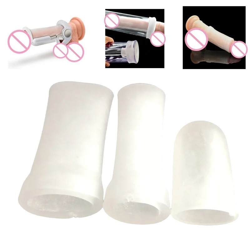 Questo pratico set di tre guaine bianche in silicone per pene offre un utilizzo variegato durante l'allenamento, la stimolazione e la protezione della pelle durante l'allungamento vacuum o l'uso con pompe. Nella confezione troverai guaine in tre dimensioni – S, M e L – per diverse esigenze e situazioni.