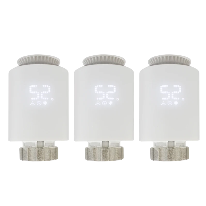 Set di tre valvole per il controllo intelligente del riscaldamento. Controllo tramite app, vocale, programmazione, blocco per bambini e connessione con altri dispositivi. Descrizione completa
