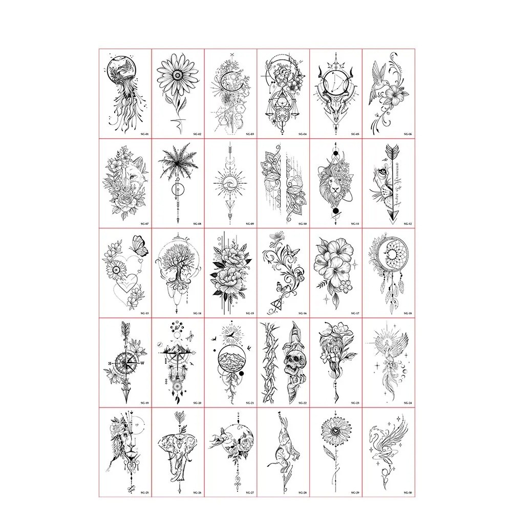 Pagina iniziale Pagina iniziale Salute e bellezza Tatuaggi Set di 30 pezzi di tatuaggi temporanei 5,7 x 9,7 cm ornamenti in bianco e nero fiori animali catturatori di sogni motivi geometrici mistici