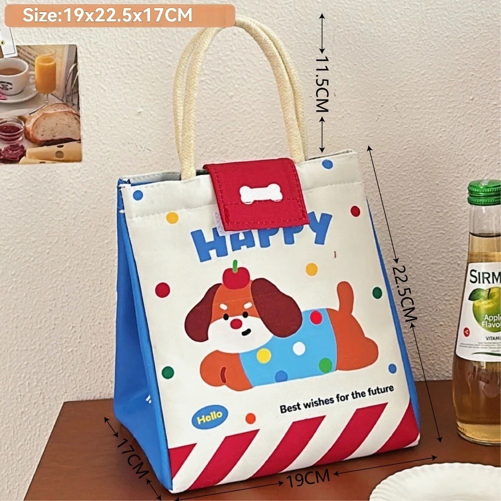 Set di 4 borse termiche per il pranzo mela coniglio hamburger cagnolino 19x22,5x17 cm Borse isolanti per cibo con fodera, zip e bottoni a pressione