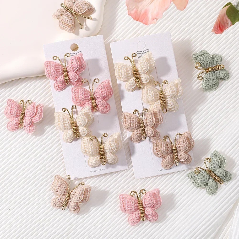 Set di 4 fermagli per capelli all'uncinetto a forma di farfalla Fatto a mano Design intrecciato Accessori per capelli eleganti