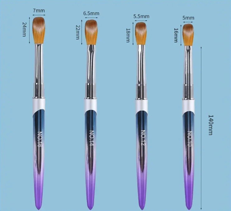 Set di 4 pennelli cosmetici 14 cm Pennelli per unghie acrilico gel e polvere Pennelli con cappuccio setole 5–7 x 16–24 mm Nail art professionale