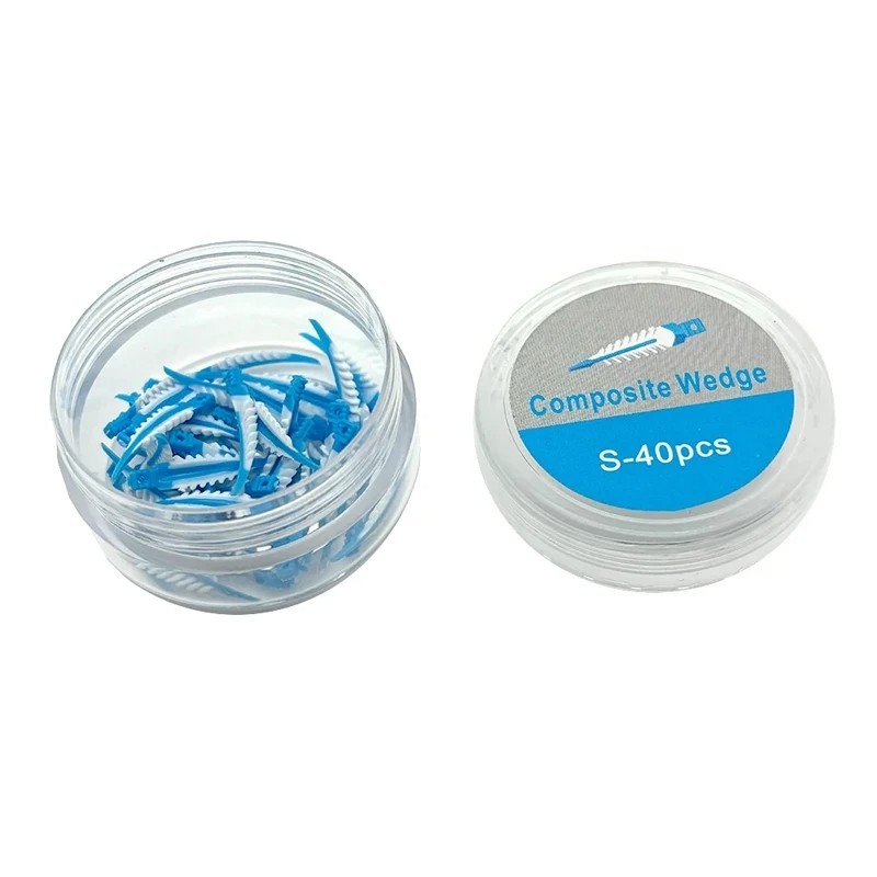Set di 40 cunei interdentali S Piccolo Blu Composito 270° cunei di silicone sigillanti Materiale dentale adattivo per il ripristino dei denti Uso professionale