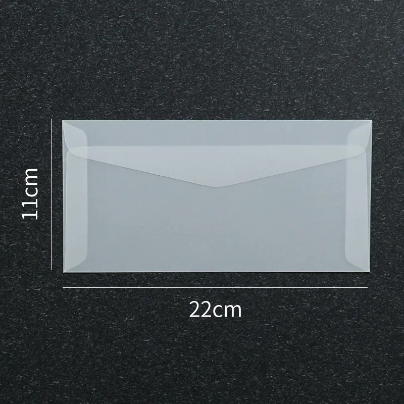 Pagina iniziale Pagina iniziale Casa e articoli domestici Articoli per ufficio Set di 50 buste trasparenti 22 x 11 cm carta semitrasparente con chiusura autoadesiva buste per auguri inviti